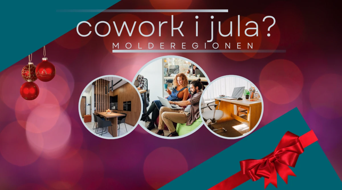 Kjenner du noen som skal hjem til jul? Vi har fått med oss flere aktører og tilbyr gratis plass å jobbe i Molderegionen både før, under og etter jul. Se hvor og når under.Skal du jobbe noen dager mens du er på besøk i jula? ta med deg arbeidet ditt/studiene dine og jobb i åpent kontorfellesskap eller cellekontor sammen med andre bedrifter. Samtidig som du jobber med egne oppgaver, vil du kunne møte andre over kaffekoppen, i lunsjen og skaffe nye bekjentskaper.