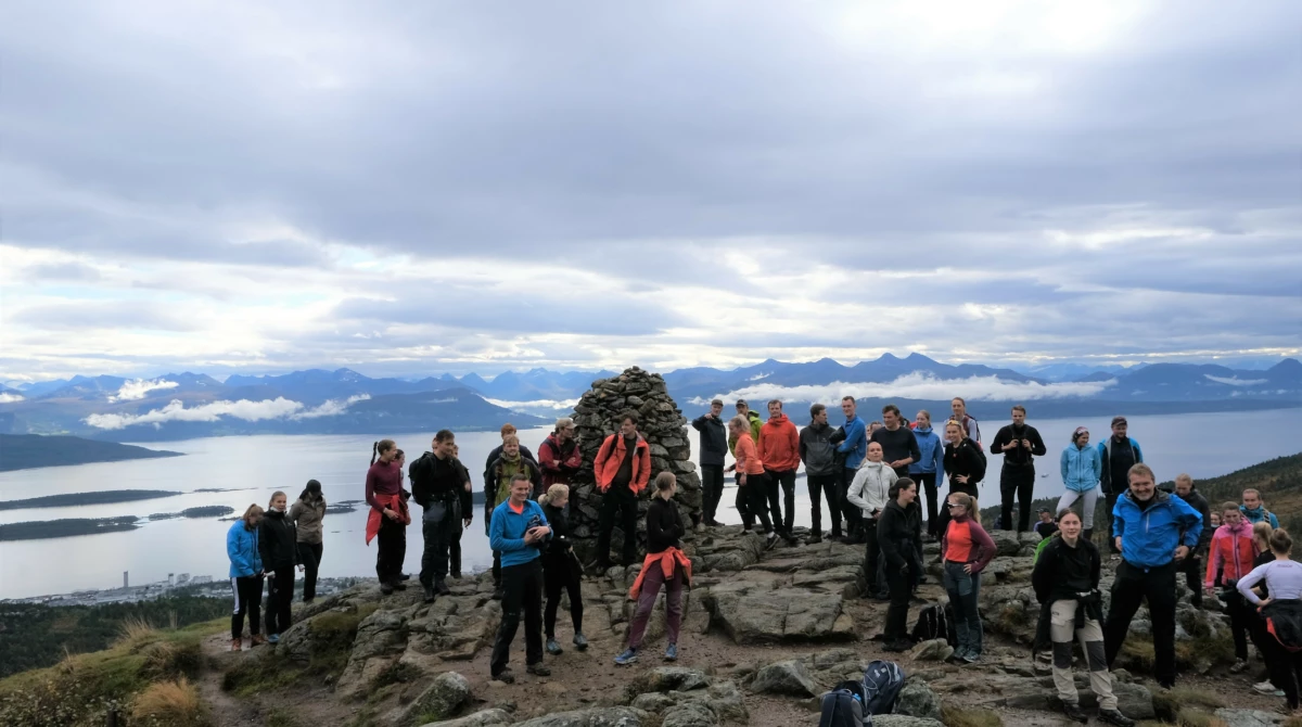 Ankomsten til Molde ble markert av høljeregn som potensielt kunne danne et dystert bakteppe for opplevelsen. Den første dagen skulle vi på tur til Tusenårsvarden i Moldemarka, og værmeldingen spådde opphold, mens regnet trommet på vinduene på hotellet. Men som om naturen ønsket å ønske studentene velkommen, lysnet det opp etter en kort stund, og panoramautsikten over Molde avslørte seg i all sin prakt når vi kom til Tusenårsvarden. Studentene fikk en flott tur, og da alle var vel inne i bussen igjen, åpnet himmelens sluser seg igjen.