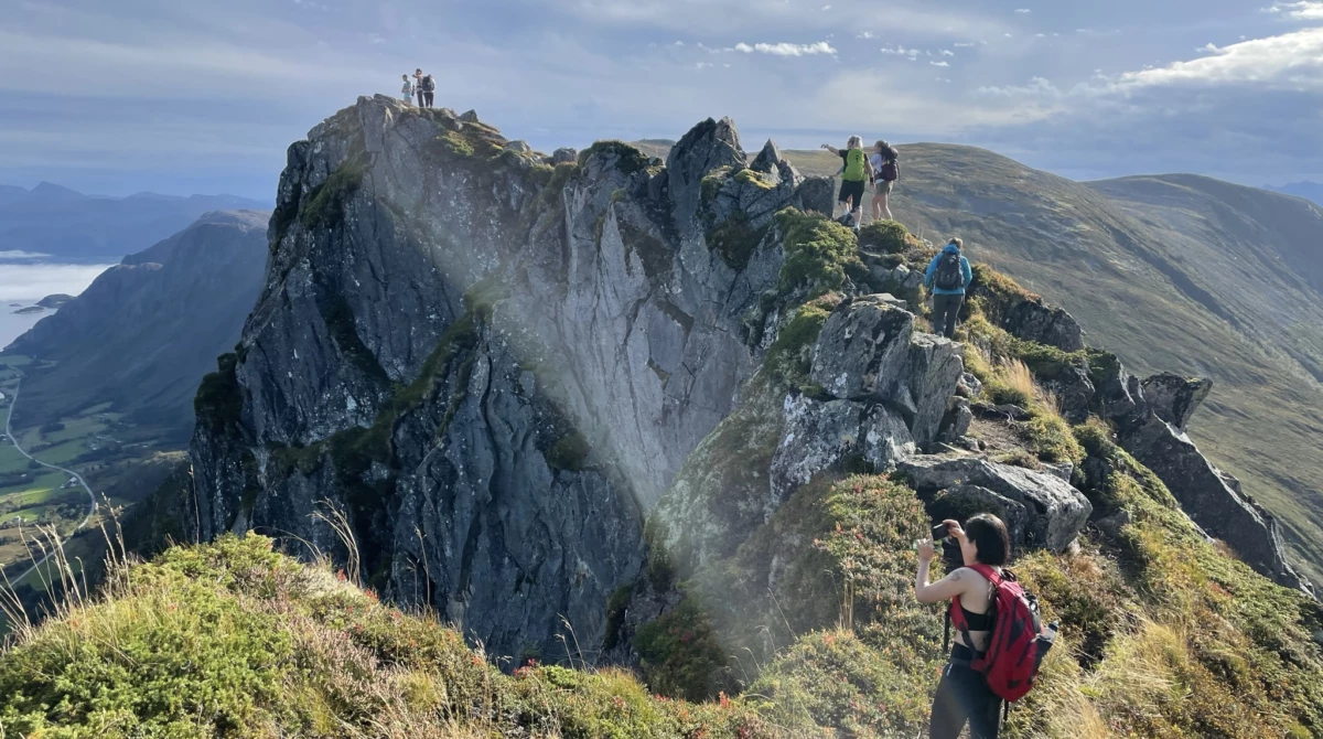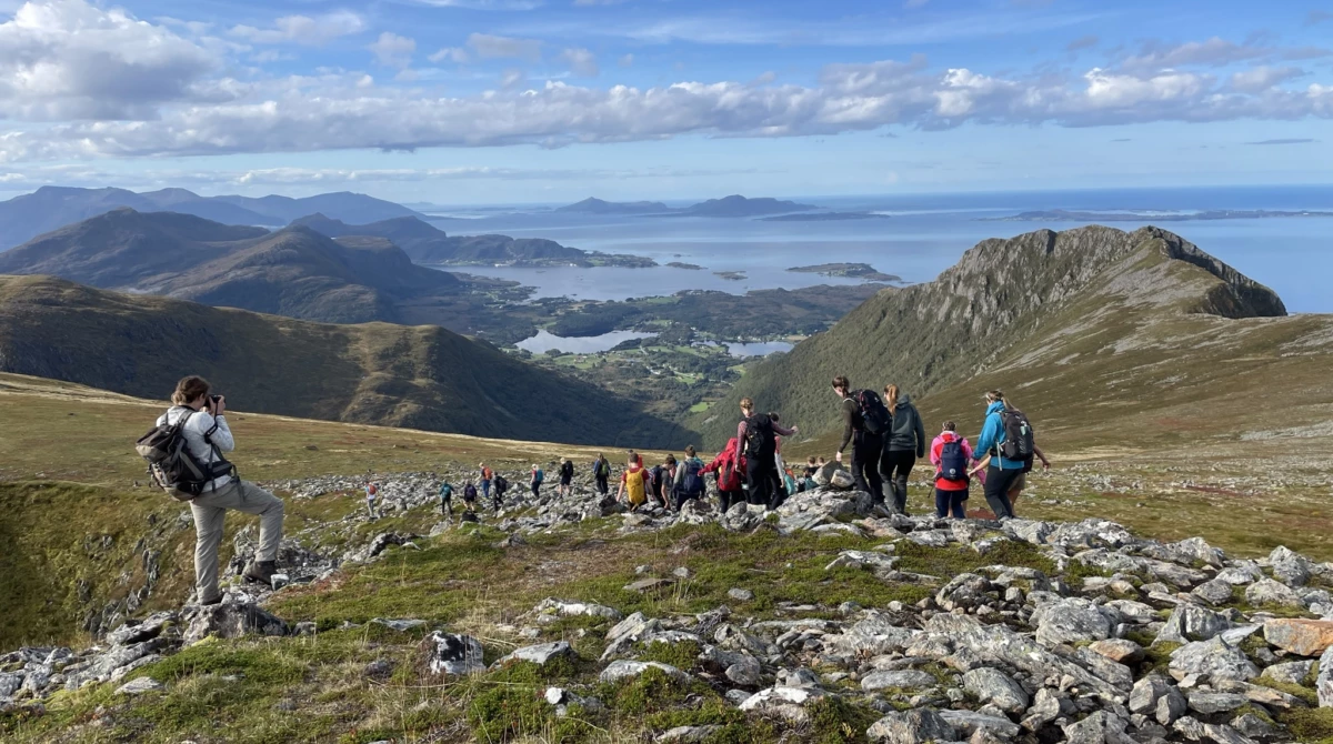 Den andre dagen ble turvalget bestemt av værprognosene, og heldigvis viste flaksen seg på nytt. Tåken omgav bussen da vi forlot Molde og Seilet, og mange forventet en dag uten utsikt. Da vi kom på fergen, lettet tåken, og dagen ble solrik og rett og slett perfekt for å gå Otrøya på tvers.