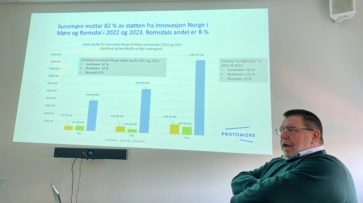 Næringslivet i regionen nyttiggjør seg ikke av mulighetene i Innovasjon Norge. Av 571 mill. kroner som er gitt i støtte og lån til næringslivet i fylket de to siste årene, er det en svært liten andel til næringslivet i Molderegionen.ProtoMore ved daglig leder Finn Amundsen var invitert til styret i MNF 25. januar for å orientere om arbeidet med nyetableringer og utvikling av næringslivet i regionen. Tallene han viste over bevilgninger fra Innovasjon Norge til næringslivet i Molderegionen viser at det er svært lave bevilgninger og at de er synkende.