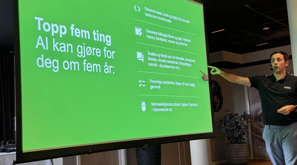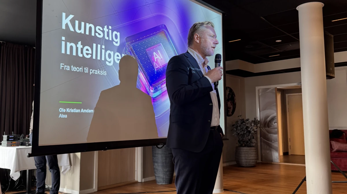 Over 100 deltakere fylte salen da MNF og Atea arrangerte seminaret «Kunstig intelligens – fra teori til praksis» 8. oktober. Konklusjonen var klar: Alle virksomheter bør nå begynne å utarbeide sin egen AI-strategi.På seminaret fikk deltakerne høre hvordan AI kan brukes til å styrke konkurransekraften, effektivisere arbeidsprosesser og skape nye muligheter. Ole Kr. Amdam, Vegard Rivenes og Richard Bruvik – delte både konkrete eksempler og strategiske perspektiver. De viste hvordan resonnerende AI, som Microsoft Copilot med GPT-5, nå kan brukes til analyse, planlegging, kundedialog og innovasjon. «Hypen er for liten» – fordi teknologien allerede endrer verdikjeder, yrkesroller og beslutningsprosesser i et omfang få fullt ut har tatt innover seg.