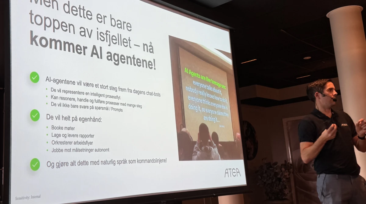 Gjennom presentasjonene fikk deltakerne et tydelig bilde av hvor raskt utviklingen går – og hvordan kunstig intelligens allerede påvirker både enkeltpersoner og hele bransjer. Vi fikk illustrerte hvordan AI kan erstatte eller støtte oppgaver som analyse, rapportering og kundebehandling, og hvordan AI-agenter vil ta over komplekse prosesser i tiden som kommer. Videre fikk vi et praktisk case som viste hvordan bruk av Copilot og ChatGPT kan effektivisere og styrke en hel salgsprosess – fra analyse og idéutvikling til oppfølging og kundeinnsikt.