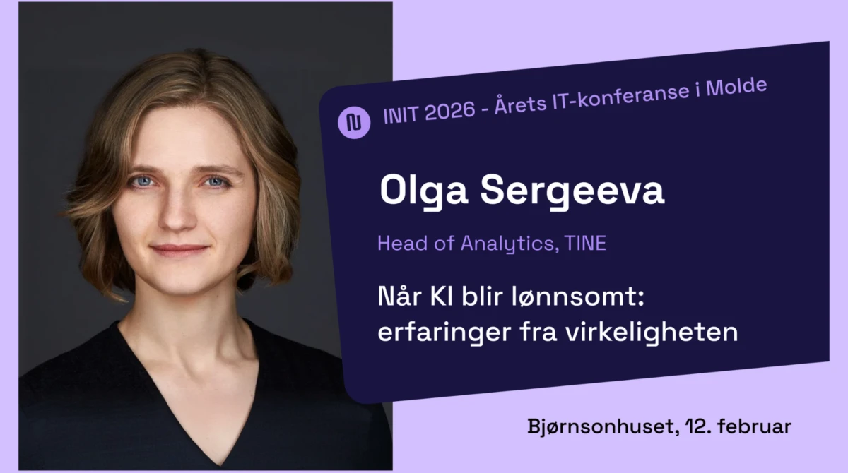 På INIT 2026 vil hun dele sine erfaringer med KI i TINE – konkrete caser der de har skapt verdi, men også eksempler på initiativer som ikke ble tatt videre, og hvorfor. Målet er å vise hvordan tydelige business case er avgjørende for å lykkes med KI i praksis.