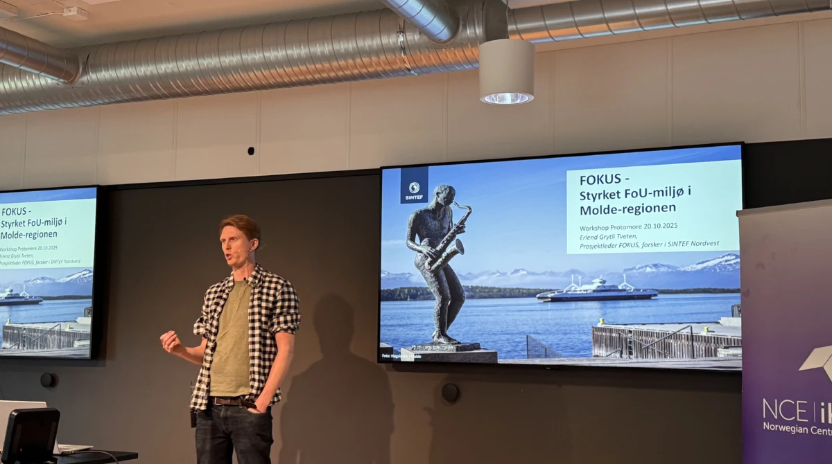 Prosjektleder Erlend Grytli Tveten fra SINTEF Nordvest presenterte FOKUS-initiativet, som har som mål å styrke forskningsmiljøet i Molde-regionen og legge til rette for samarbeid mellom forskere og næringsaktører. Gjennom initiativet skal det bygges broer mellom forskningsinstitusjoner og lokalt næringsliv, slik at mer av forskningen får praktisk nytte og verdiskaping i regionen.