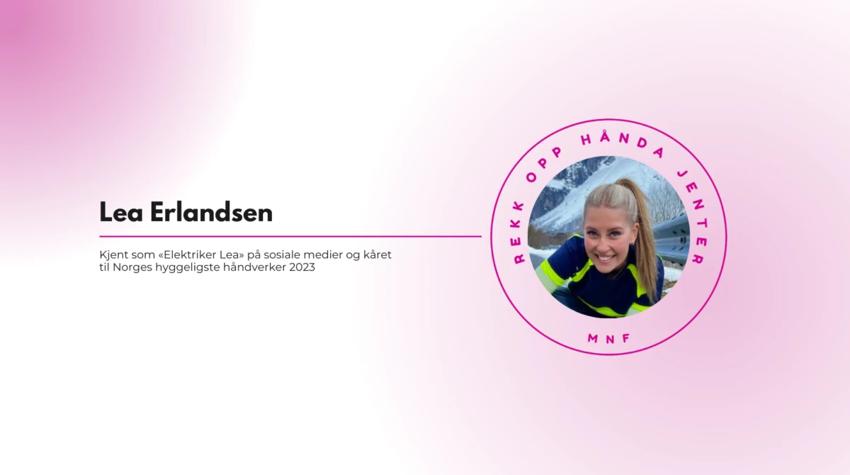Lea deler sin vei inn i elektrobransjen og hvordan det er å være kvinne i et fortsatt mannsdominert yrke. Med ærlighet og glimt i øyet snakker hun om utfordringene hun har møtt underveis – og hvorfor hun likevel mener flere jenter bør tørre å ta plass i faget.