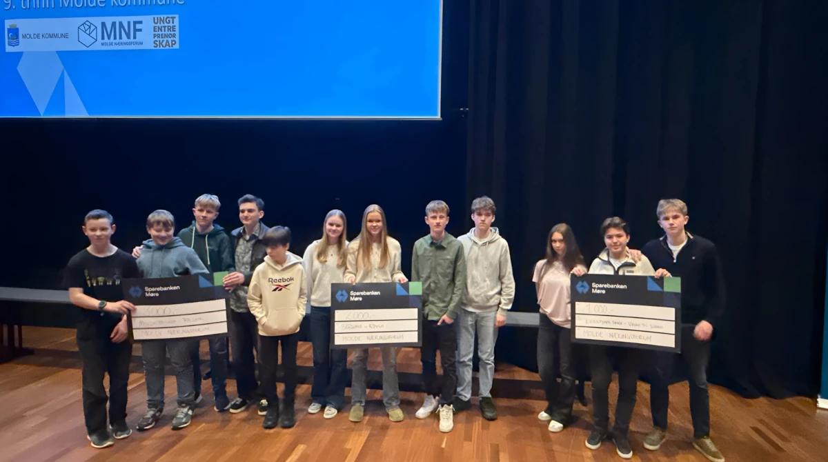 Unge hoder, store idéer. Under innovasjonscamp-finalen viste 9.-klassinger i Molde hva som er mulig når kreativitet møter virkelige utfordringer.Fredag 20. mars var Bjørnsonhuset fylt med kreativitet, engasjement og imponerende løsninger da finalen i årets innovasjonscamp gikk av stabelen. De beste bidragene fra ungdomsskolene i Molde kommune møttes til finale etter en uke med intensivt arbeid med reelle problemstillinger fra næringslivet.