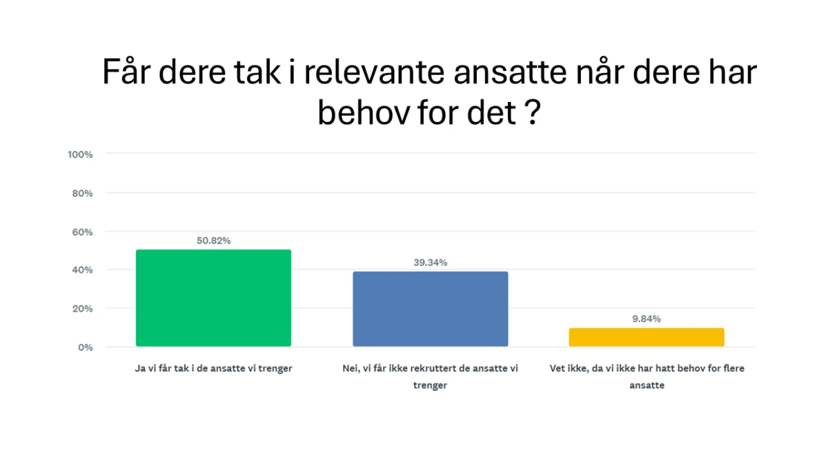 Undersøkelsen viser at nesten fire av ti bedrifter opplever at de ikke alltid får tak i relevant kompetanse når behovet oppstår. Dette gjelder både store og små virksomheter, og reflekterer en utvikling som også er tydelig nasjonalt.