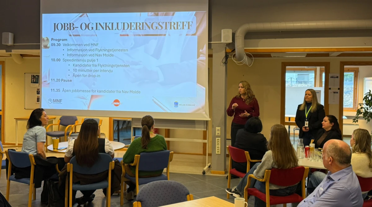 Over 130 arbeidssøkere og 10 bedrifter møttes da Molde Næringsforum, i samarbeid med Nav Molde og Flyktningetjenesten, arrangerte jobb- og inkluderingstreff i forrige uke. Målet med dagen var enkelt: å skape en møteplass der arbeidsgivere og motiverte kandidater kan bli kjent – og hvor veien til jobb kan bli litt kortere.Før kandidatene kom, fikk bedriftene en kort innføring fra Nav Molde og Flyktningetjenesten om kandidatgruppen og hvilke muligheter som finnes for samarbeid og rekruttering. Deretter startet speedintervjuene med kandidater fra Flyktningetjenesten, før arrangementet fortsatte som en åpen jobbmesse hvor kandidater fra Nav Molde også deltok.